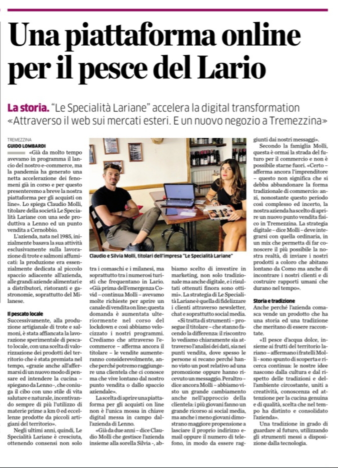 DAL QUOTIDIANO LA PROVINCIA DI COMO “LA DIGITAL TRASFORMATION E UN NUOVO NEGOZIO A TREMEZZINA”